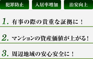 マンションへの防犯カメラ設置は重要な項目で、最近のチラシは防犯カメラが設置されているということが、まず間違いなく記載されています。何故ならハイセキュリティーということはマンションを販売する上で非常に有効なセールスポイントとなるからです。